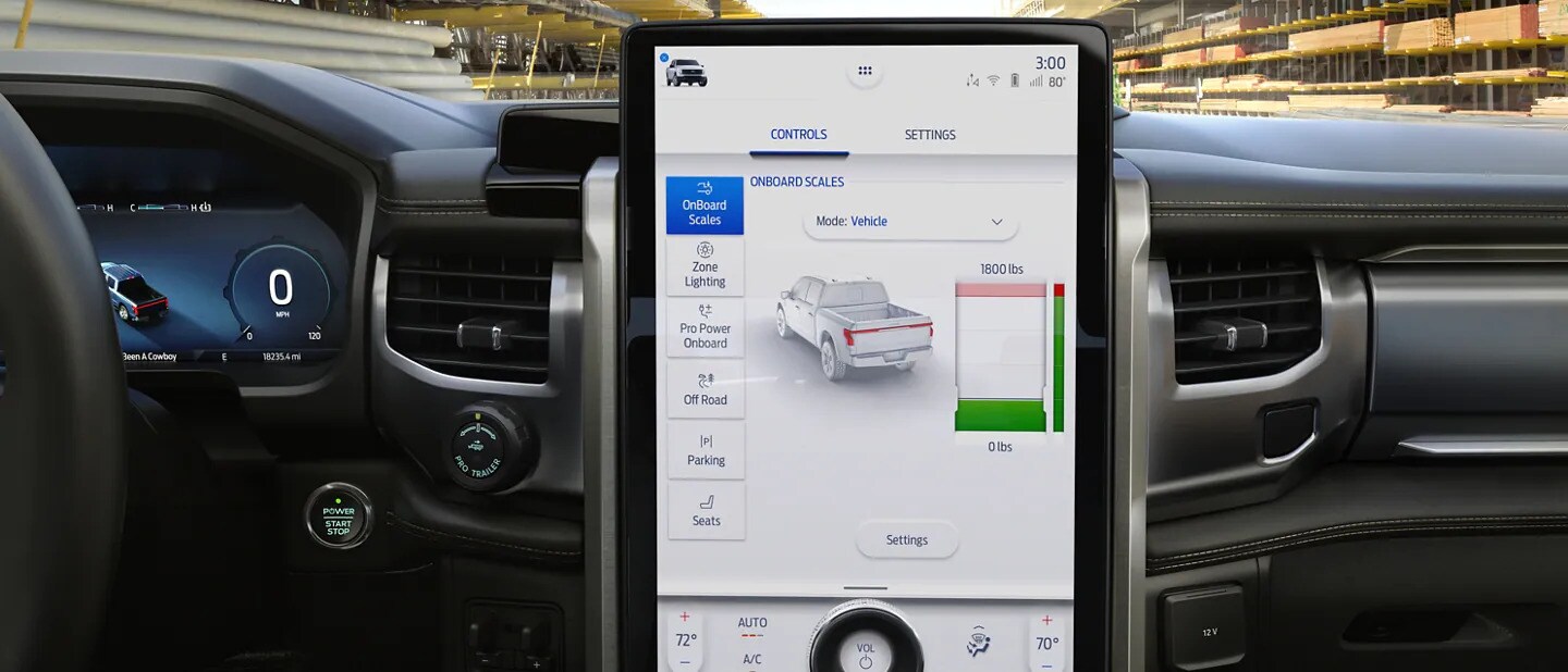 Load information is displayed in the center touchscreen, on a mobile phone through the FordPassâ„¢ App.* or in graphics within the truck's smart taillamps. This way you know what you're carrying doesn't exceed the recommended weight capacity.
