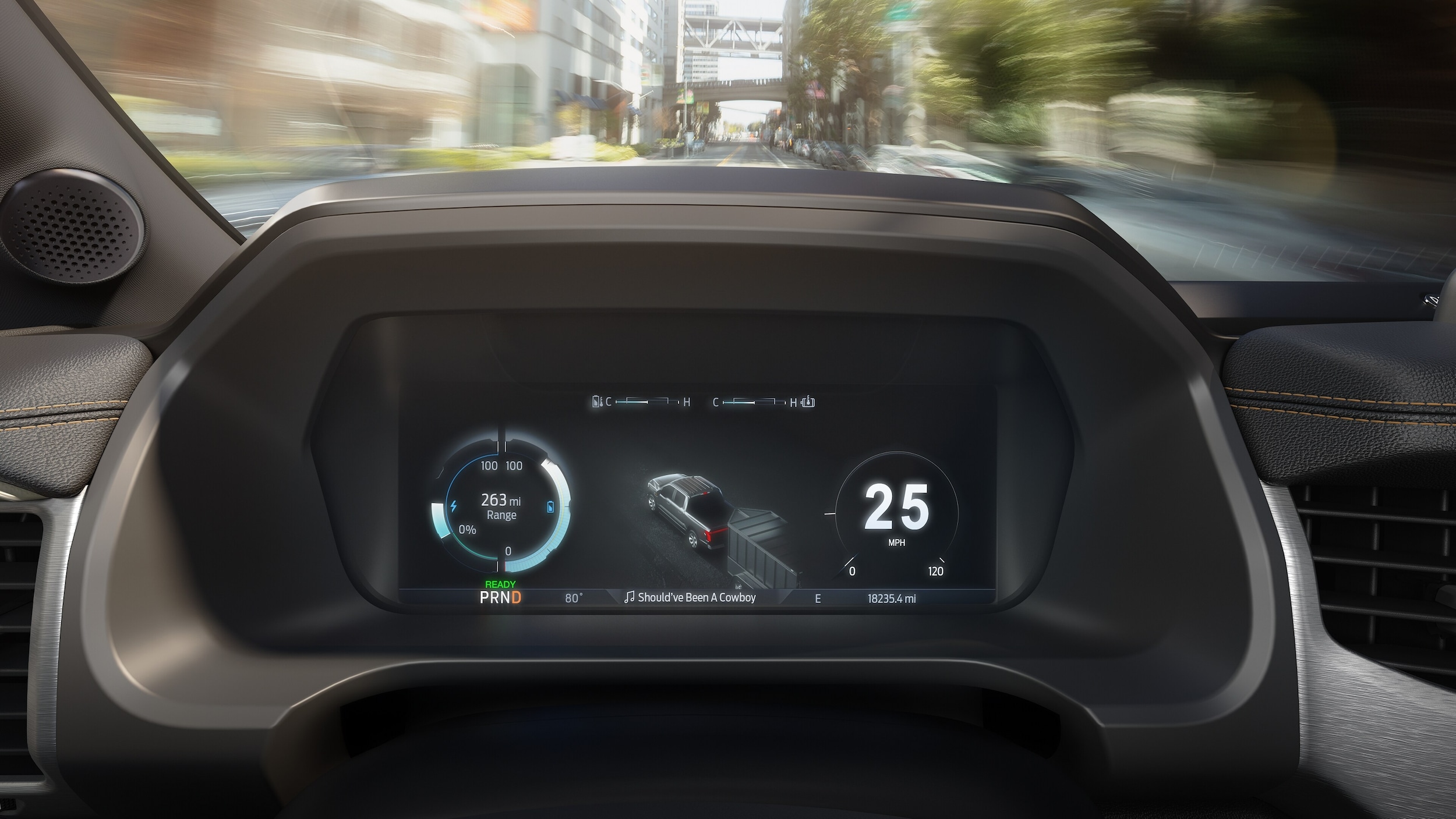 Optimize your F-150 Lightning® performance over a variety of terrain, road conditions and usages. Each mode has its own distinct look displayed on the instrument cluster. That way you know at a glance which one you've selected - Normal, Sport, Tow Haul, and Off-Road.