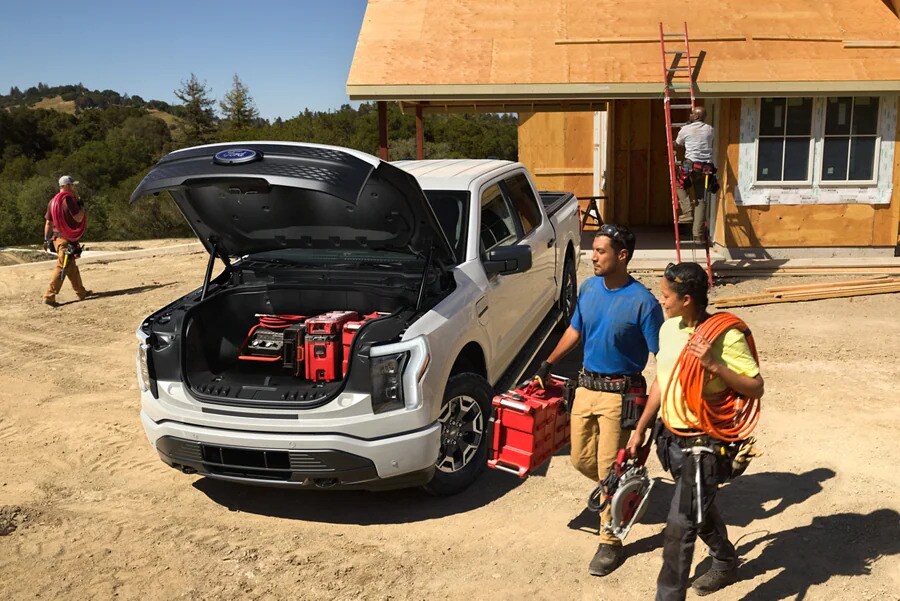 Be the talk of the tailgate. Pack along some conveniences camping. Plug-in a few power tools. With this much power your F-150® Lightning™ is up to the task.